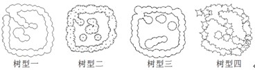 【畫成片樹】:本命令用于平面綠化設(shè)計(jì),繪制的樹木如下圖: