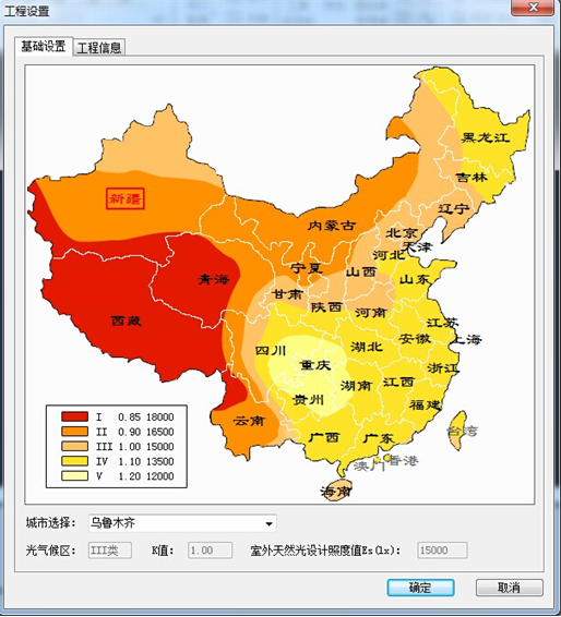 工程設(shè)置可對(duì)城市、光氣候區(qū)、建筑類型等進(jìn)行設(shè)置
